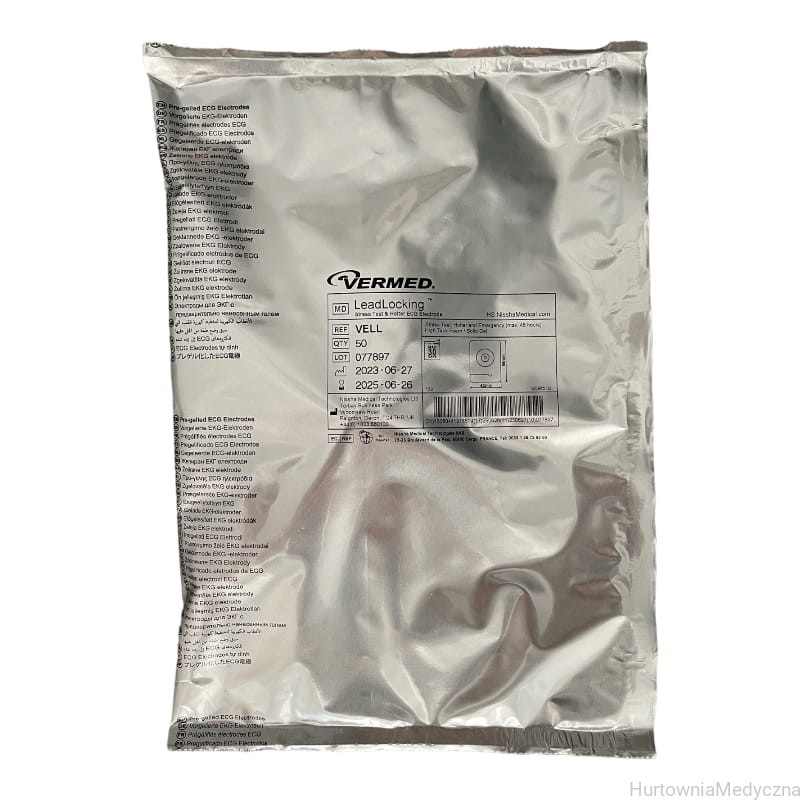Elektroda elektrody VERMED VELL do Holtera 24h A'50 szt. to elektroda jednorazowego użytku, niesterylna, przeznaczona do badań holterowskich i 24-godzinnego monitoringu pacjenta.