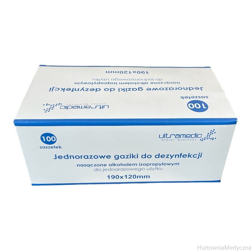 Gaziki do dezynfekcji skóry XXL nasączone alkoholem A'100 szt BARDZO DUŻE