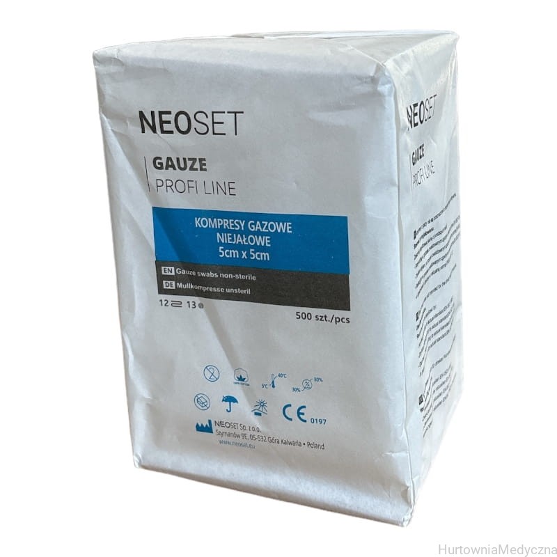 Kompresy gazowe niesterylne 5 x 5 a'500 12-warst, 13 nitek NEOSET