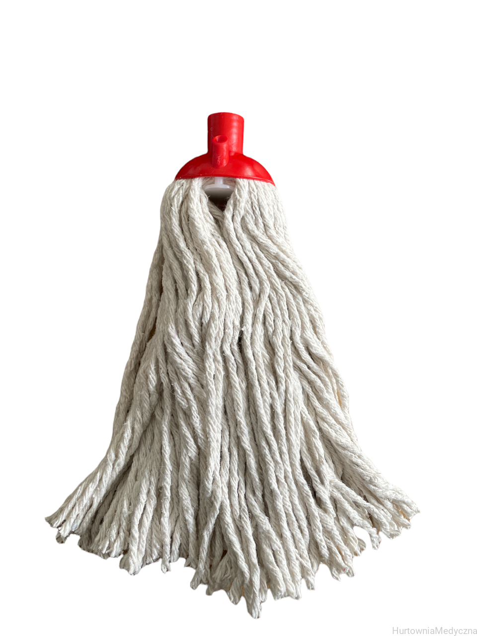 Mop sznurkowy maxi bawełniany. Końcówka składa się z bardzo wielu najwyższej jakości sznurków bawełnianych. Nadaje się do mycia płytek, podłóg laminowanych, powierzchni wylewanych, terakoty. Gwint mopa wytworzony jest z bardzo wytrzymałego tworzywa. Można stosować z chemią gospodarczą