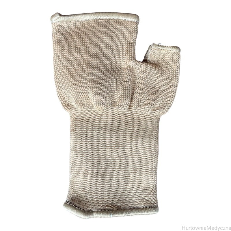Opaskę naciągnąć od dołu na wysokość stawu nadgarstkowego. Stosować pod nadzorem fizjoterapeuty lub lekarza.
