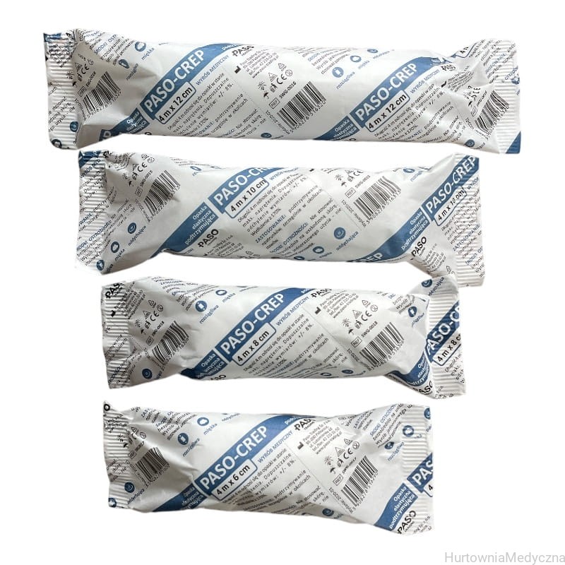 Opaska elastyczna podtrzymująca PASO CREP to opaska elastyczna podtrzymująca rozciągliwa miękka, oddychająca służy do podtrzymywania wszelkiego rodzaju opatrunków, szczególnie na stawach, stożkowatych i zaokrąglonych częściach ciała. Dzięki elastyczności łatwo dopasowuje się do ciała i nie zsuwa się w czasie wykonywania aktywności fizycznej. Długość 4 m odnosi się do opaski w stanie maks. naprężenia. Wydłużenie: ≥170%.