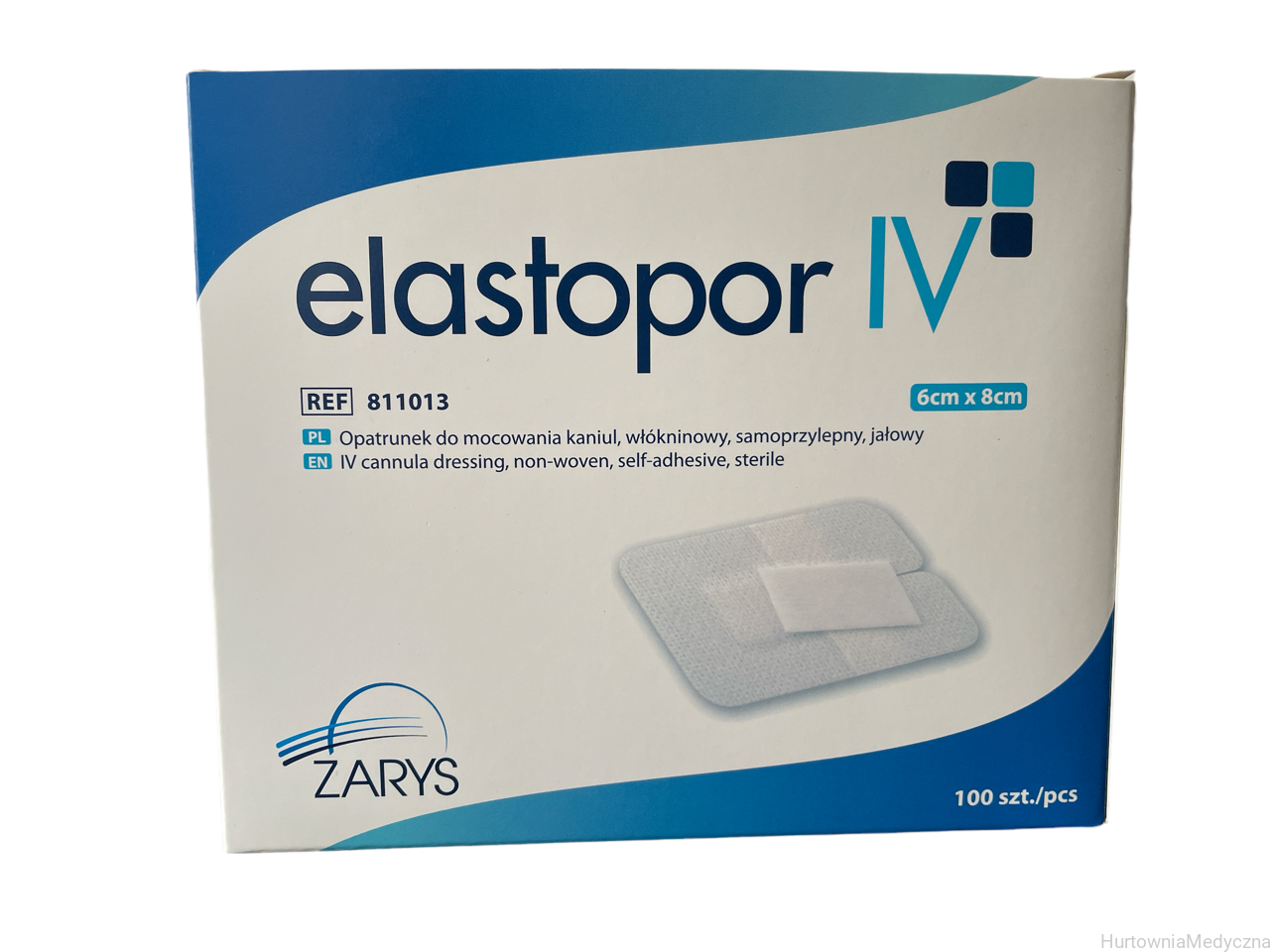 Plaster pod venflon opatrunek do mocowania kaniul ELASTOPOR IV roz. 6*8 to samoprzylepny opatrunek do mocowania kaniul wykonany z hydrofobowej włókniny, pokryty klejem akrylowym. Przeznaczony do stabilizacji, zabezpieczenia i mocowania kaniul dożylnych, zmniejsza ryzyko zakażeń. Posiada centralnie umieszczony wkład chłonny zabezpieczający przed przywieraniem włókniny do miejsca wkłucia, podkładka włókninowa przeznaczona do umieszczenia pod skrzydełkami kaniuli zapobiega uszkodzeniu skóry przez tworzywo kaniuli, mikropory w strukturze włókniny zapewniają odpowiednią paroprzepuszczalność, dzięki czemu zachodzi prawidłowa wymiana gazowa między opatrunkiem a skórą. Plaster jest elastyczny - dopasowuje się do kształtów ciała, zapewnia swobodę ruchów , patrunek jest hipoalergiczny i jałowy