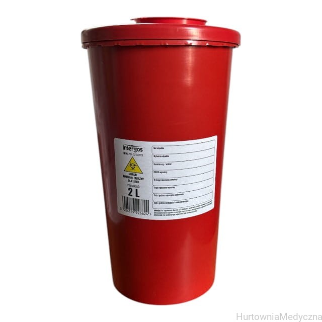 Pojemnik, pojemniki 2 L na odpady medyczne czerwony wysoki