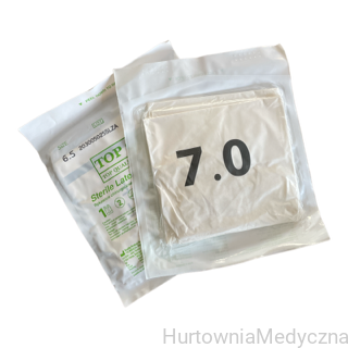 Rękawice chirurgiczne sterylne bezpudrowe TOP GLOVE. Wykonane z lateksu kauczuku naturalnego. Rękawice są bezpudrowe, pozwalają wyeliminować podrażnienia skóry spojówek oraz dróg oddechowych wywoływane przez puder. Powierzchnia rękawiczki jest teksturowana co zapewnia doskonałą chwytność w środowisku mokrym i suchym, mankiet równomiernie rolowany ułatwiający zakładanie. Rękawiczki posiadają anatomiczny kształt co zmniejsza zmęczenie rąk podczas długotrwałych zabiegów. Rękawiczki są zgodne z wymaganiami EN 455, odporne na przenikanie wirusów zgodnie z normą ASTM F1671, test przepuszczalności wody - AQL 1,0. Pakowane podwójnie w opakowania papierowe. Rękawice przeznaczone są do standardowych zabiegów chirurgicznych. Opakowanie zbiorcze 50 par