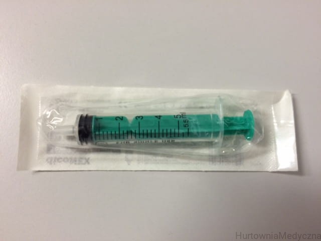 Strzykawka 3 - częściowa jednorazowa LUER. Cylinder strzykawki jest przezroczysty wykonany z polipropylenu, umożliwiający doskonałą wizualizację zawartości a tłok jest w zielonym kontrastującym kolorze, i pozwala na dokładne i wygodne nabieranie leków. Strzykawka posiada uszczelnienie w postaci podwójnego pierścienia na lateksowym korku położonym na szczycie tłoka, ma minimalną objętość zalegająca (przestrzeń martwa). Posiada również kryzę ograniczającą, zabezpieczającą przed przypadkowym wysunięciem tłoka oraz wyraźną, czytelną skala koloru czarnego ułatwiającą dawkowanie. Produkt jednorazowego użytku, niepirogenny, nietoksyczny, sterylny. Dostępne pojemności 2,5,10 pakowane po 100 szt i 20 ml pakowanie po 50 szt.