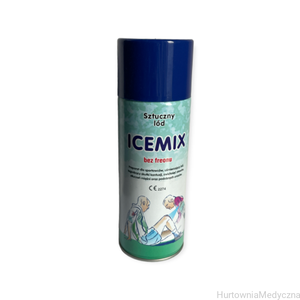 Sztuczny LÓD Icemix spray 400 ml to preparat dla sportowców uśmierzający ból łagodzący skutki kontuzji, zwichnięć, stłuczeń i innych urazów poprzez błyskawiczne obniżenie temperatury ciała w miejscu kontuzji.