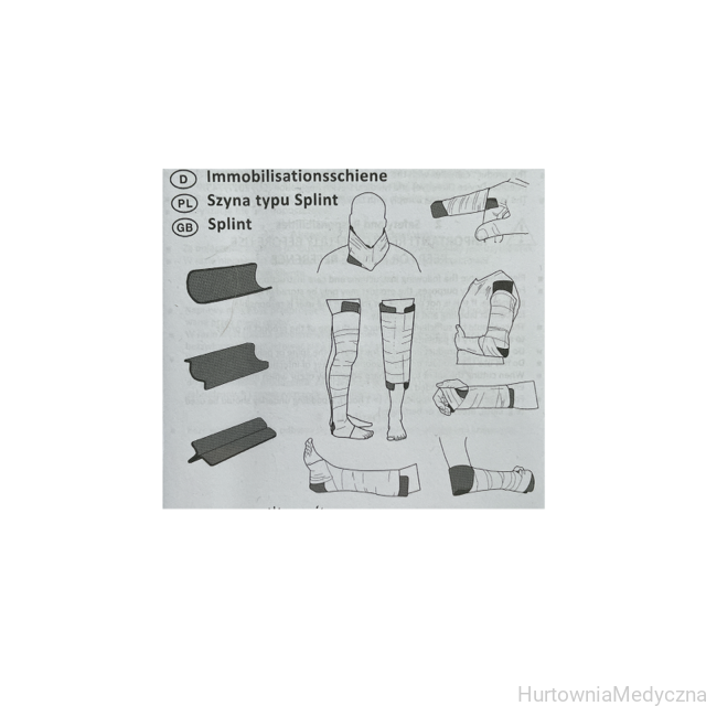 Szyna Splint to lekka szyna zbudowana aluminium pokrytego obustronnie pianką poliuretanową, która chroni przed otarciem i zapewnia komfort poszkodowanemu. Służy do unieruchomienia uszkodzonej kończyny. Jest wodoodporna, lekka, przenikliwa dla promieni RTG.
