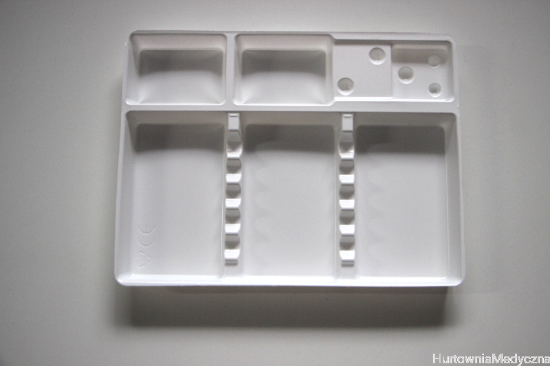 Tacka tacki stomatologiczne BIAŁE A'100 szt. Wygodna wielofunkcyjna tacka stomatologiczna z wygodnym miejscem na narzędzia diagnostyczne. Pozwala na utrzymanie porządku w miejscu pracy. Wymiary 190 x 149 mm