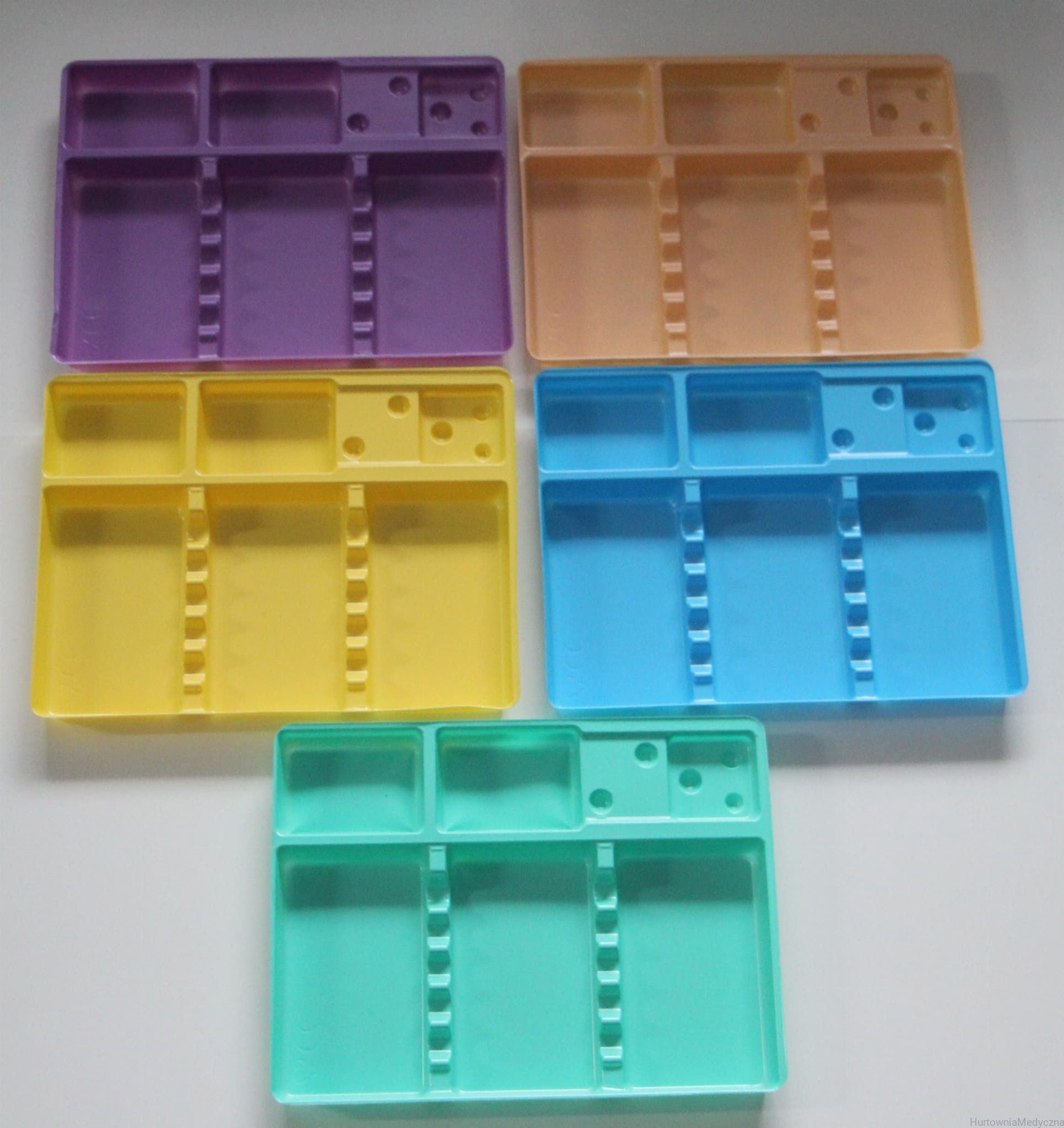 Tacka tacki stomatologiczne KOLOROWE A'100 szt. Wygodna wielofunkcyjna tacka stomatologiczna z wygodnym miejscem na narzędzia diagnostyczne. Pozwala na utrzymanie porządku w miejscu pracy. Wymiary 190 x 149 mm. Dostępne kolory: zielony, niebieski, żółty, łosoś, fiolet