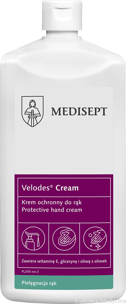 Zastosowanie: Velodes® Cream to delikatny krem do pielęgnacji skóry rąk i ciała. Działa ochronnie, nawilżająco i regenerująca. Pielęgnuje przesuszoną, podrażnioną i szorstką skórę dłoni. Zalecany jest do codziennego stosowania po częstym myciu rąk oraz po higienicznej dezynfekcji. Szczególnie zalecany dla personelu medycznego oraz osób narażonych na wysuszenie i macerację skóry w wyniku częstego mycia i noszenia rękawic. Zapewnia dłoniom jedwabistą miękkość. Szybko się wchłania przynosząc natychmiastowe uczucie komfortu. Nie zawiera parabenów.
